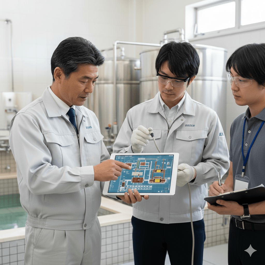日常的な塩素管理や薬剤投入は重要ですが、それだけでは根本対策とは言えません。バイオフィルムが薬剤を遮断し、内部の菌が生き残るため、一時的に検査数値が下がっても数ヶ月後に再検出されるケースが少なくありません。